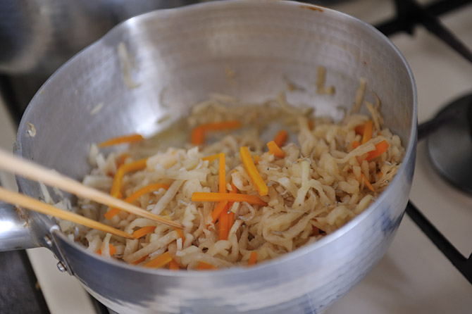 ときどき、落としぶたを取って菜箸でかきまぜて、