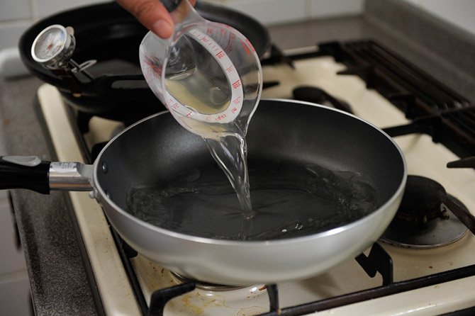 フライパンに、煮汁の材料をあわせておきます。