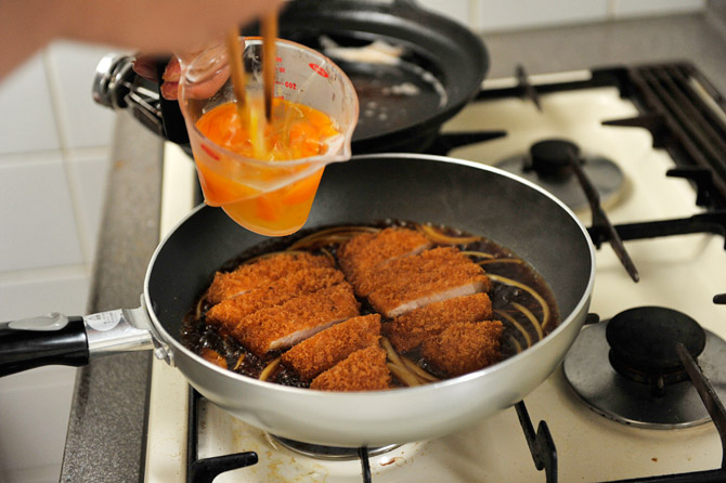 卵を、さっと溶きます。