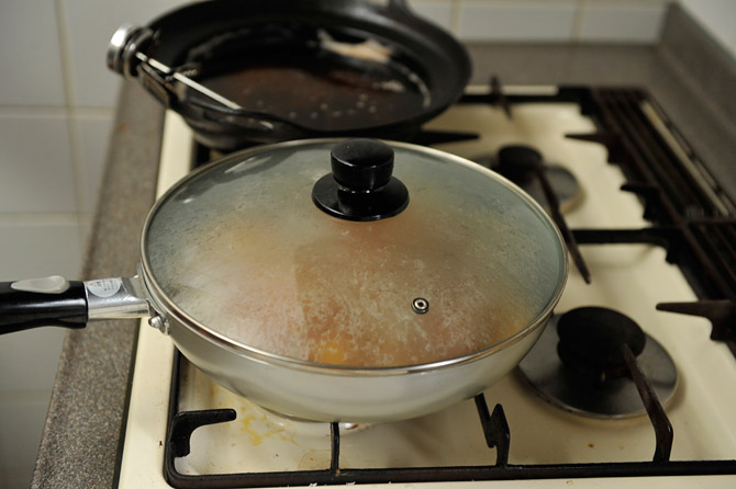中火で40秒煮て、火をとめます。