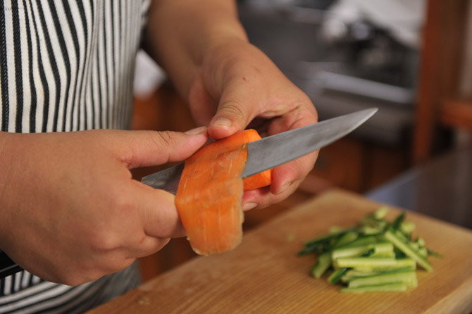 にんじんは、皮をむいて。