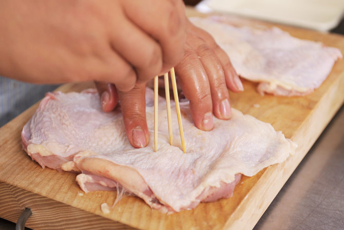 こうすることで脂が出て、ぱりっと焼き上がります。