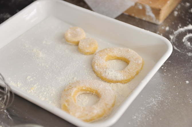 抜いた生地を並べ、上からも、打ち粉をしておきます。