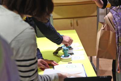 糸井相談員が手帳のページにスタンプを押してくれます。
