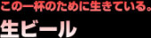 黄金色に輝くキンキンに冷えた魂のガソリン。 沸き立つ泡よ、オレの上唇を彩ってくれ! 世界中のオトナたちのストレスを 瞬時に洗い流す魔法の液体は、安価で合法! 人生の相棒はこいつに決めた! 生ビール!
