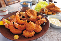 | ・アジ 4尾 ・えび 4尾 ・ホタテ貝柱 4コ ・鶏の手羽中 4本 ・アスパラガス 4本 ・なす 2本 ・しいたけ 4本 |