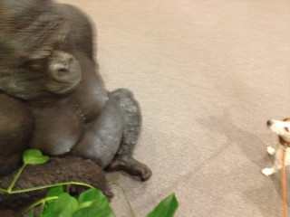 おとうさんが、ゴリラさんにあいさつさせようとしました。