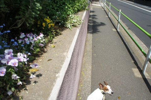 犬がよく通る小学校は、いつもきれいな花を咲かせてます。