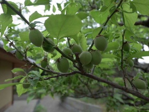 梅がころころと青い実をつけてます。