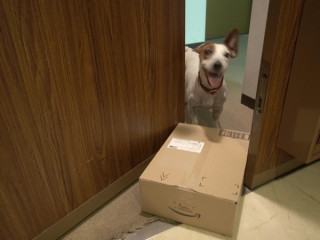 段ボールに「にやり」っていう笑う口が描いてあるでしょう。