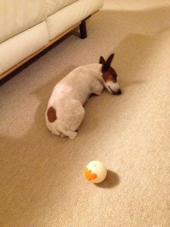 おとうさんが仕事をしているので、足もとで見張りをしています。