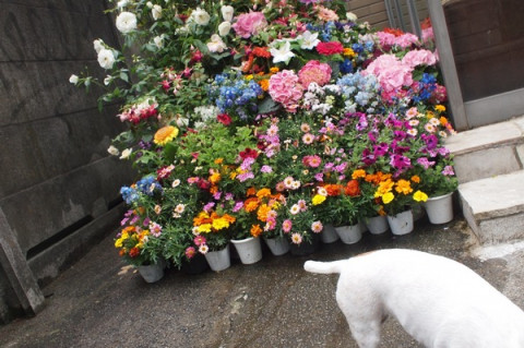 おとうさんは、花の写真を撮るとき、なんとかして、犬といっしょに写そうとします。