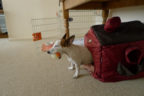 犬は叱られそうになると、さっとおうちに入ります。