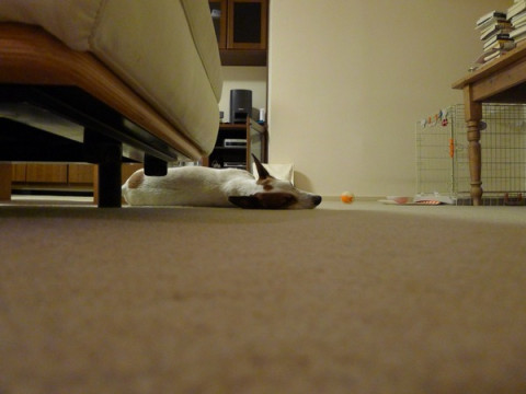 家にいるときの犬は、たいていどこにいるか決まってます。