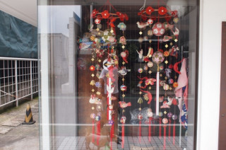一見、にぎやかな飾り付けのショーウィンドウですが、よくよく見ると、犬もいます。