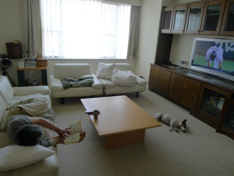 おとうさんは「休養宣言」して、ソファに陣取りました。