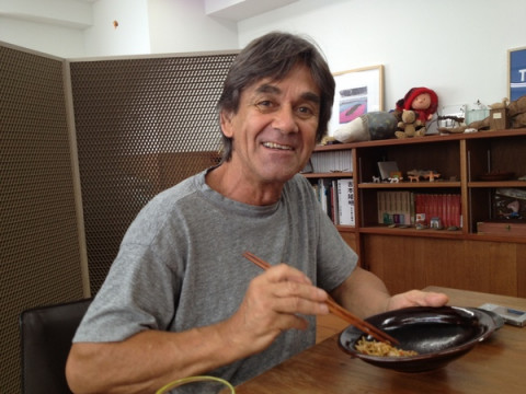 おとうさんは、アンリさんと、浪花屋総本店の焼きそばを、食べてます。