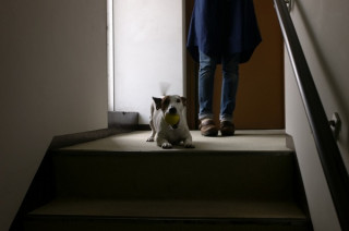 ボール投げを終って、これから散歩に行こうというとき、カメラを持ったおとうさんが来たよ。