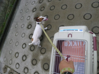 おとうさんが、ちょっと雨を降らせておいてくれたので、道が熱くなくなって、散歩しながら帰れました。
