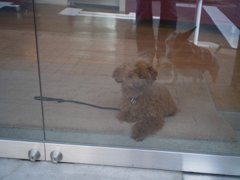 ガラスのドアの向こう側で、こんなこがこっちを見てた。