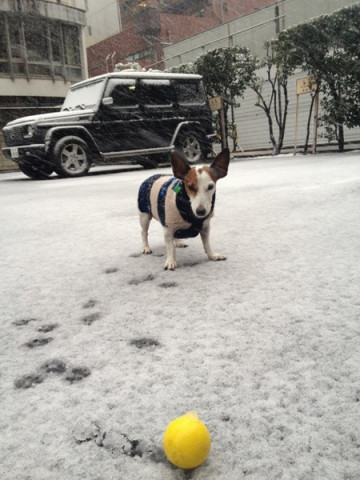犬は、あんまり雪を好みません。