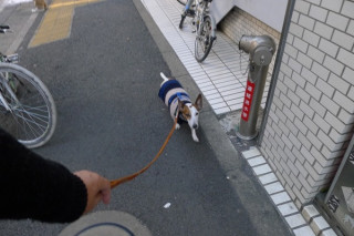 たいていお散歩のはじめは、犬が前を歩いています。
