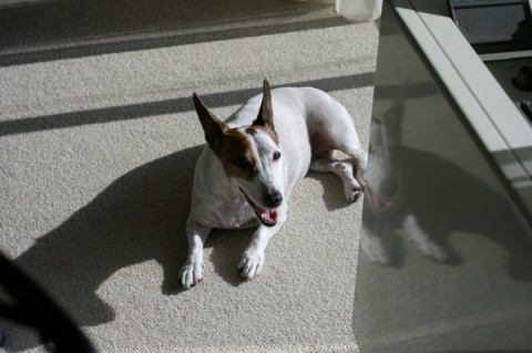 洗濯ものといっしょに、日なたぼっこしてたら、暑くてはぁはぁしてしまいました。