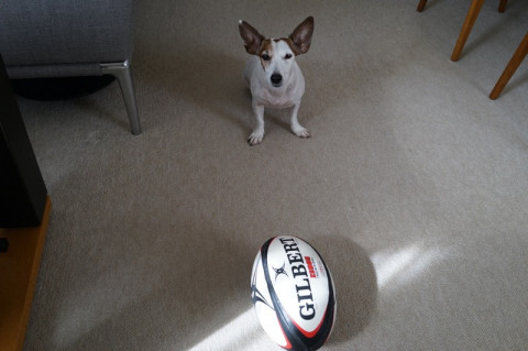 「にわか」ラグビーファンですが、犬も、それに誘われています。