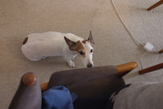 おやちとか、ごはんのときはちょっと声を出したりしますが、散歩の場合は、そのときがくるまでちんまりとおとなしく待ってます。