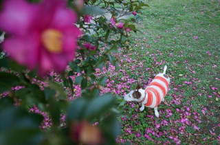 夕方は、早めの時間に、おとうさんと散歩に出かけました。