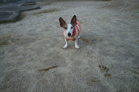 ボール投げは飽きているけど、棒を投げてもらうのは、好きです。