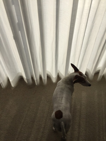 犬はちょっとひなたぼっこして、のんびりしてから、人間のおかあさんと散歩です。