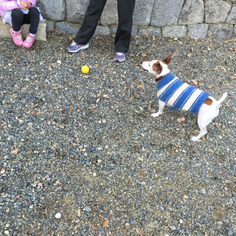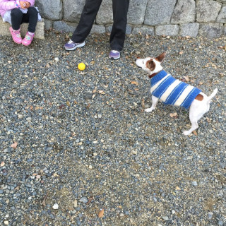 おとうさんとのボール投げは、あきているのですが、見知らぬ女の子に投げてもらうと、なんだか楽しいんです。