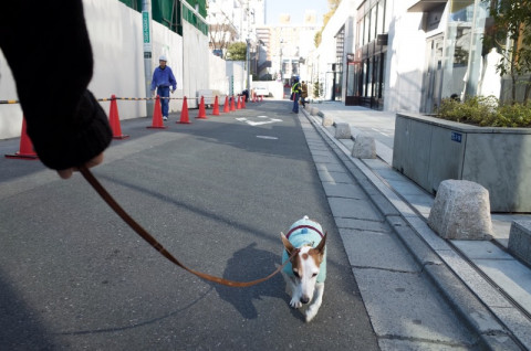カメラを後にかまえて、シャッターを親指で押す。