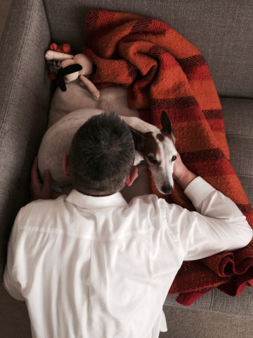 おでこや、目を押しつけて、犬と温度の交換をします。