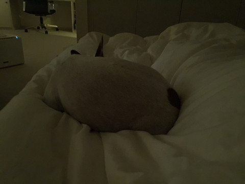 よく見たら、おまんじゅうのような犬が、見えますよ。