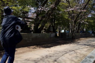 お花見公演をねらいましたが、背景の桜が、まだ咲いてない。