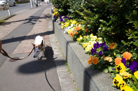 犬といっしょに写りやすいのは、どうしても、下のほうに咲いている草の花になります。