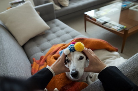 人間のおかあさんがつくってるぽんぽんを、頭に乗せました。