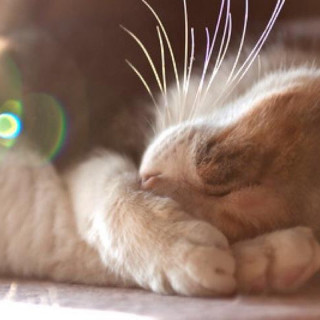 静かにおやすみだけど、おひげがパーンッと、花火みたいにひろがってます。