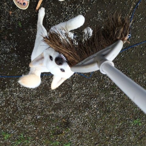 お掃除してると、必死でくいついてくる。