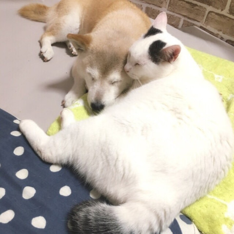 老犬の「しの」さんと、猫の「くう」ちゃん。