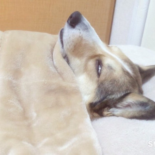 毛布かぶって、天井向いて、白目で寝てました。