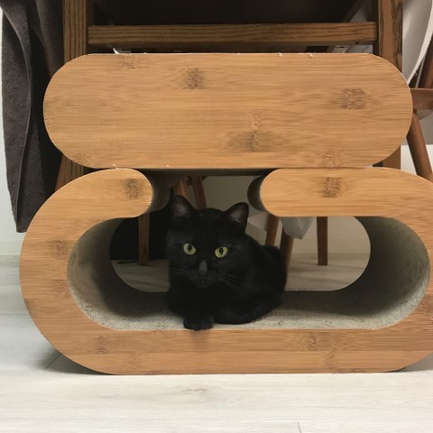 そこにちんまり収まると、なにかの彫刻みたいだよ。
