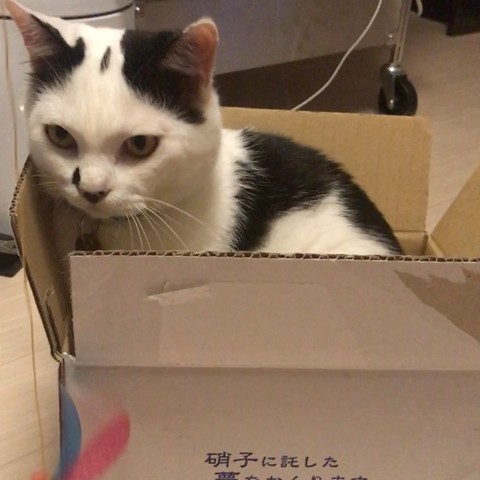 おそらく、こうやってダンボール遊びが楽しいから、ここにいるんでしょうけど、お顔がきびしいですよねー。