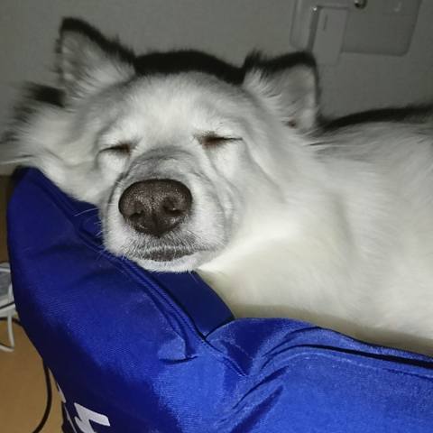 「寝顔がおばあちゃん」のコメントで、てっきり老犬と思ったら、なんと1歳3ヶ月でーす。