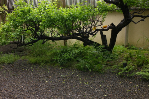 雨のなかでも鳥が来て、みかんをちゅくちゅく啄ばんでいく。