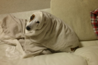 ちょっと目を離している間に、ブイヨン先生は、こんなにも、ていねいにくるまって!