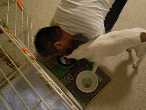 犬が、ごはんを、ほったらかしにしておいたら、突然、おとうさんが食べようとしたんですよ!