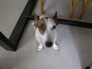散歩の直前になると、犬は、おとうさんに圧力をかけます。
